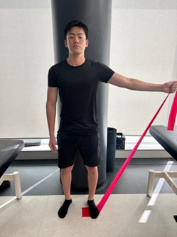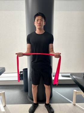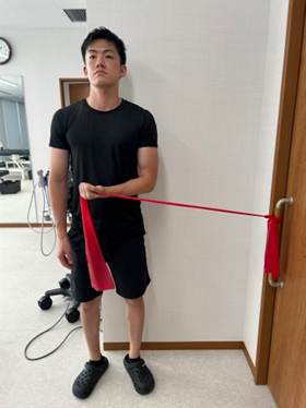 図:チューブトレーニング(インナーマッスルの強化)の様子