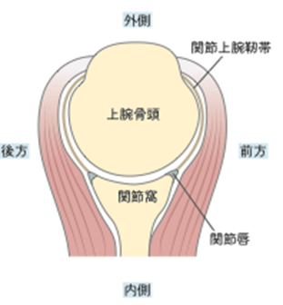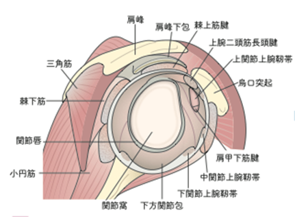 反復性肩関節脱臼を理解するためには、まず肩関節の構造を知る必要があります。肩関節は、上腕骨の先端にあるボール状の「骨頭(こっとう)」が、肩甲骨にあるお皿のような「関節窩(かんせつか)」にはまり込む形をしています。この構造は、腕を様々な方向に大きく動かすことを可能にしている一方で、構造的に不安定で脱臼しやすいという側面も持っています。