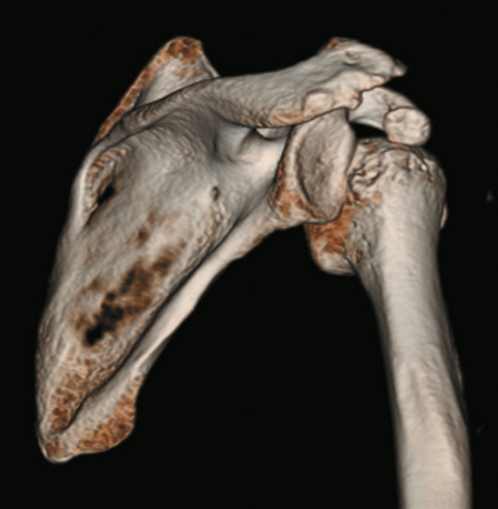 脱臼の方向を確認するほか、骨頭側(ヒル・サックス損傷)や関節窩側(骨性バンカート損傷)に骨の損傷がないかを評価します。反復性肩関節脱臼の診断には必須の検査です。